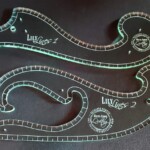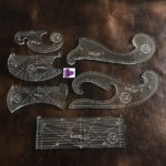 Own all the Favorite rulers in the Garden Lines quilting ruler collection, including a set of three vivid purple drawing wheels.  Made of 1/4″ compressed light emitting acrylic, the rulers are a pale green from above, but glow a beautiful aquamarine from the edge.  Even the fine engraved lines glow in crosslight for excellent visibility on both light and dark fabrics. This set is the ultimate in precision with 1/8″ echo lines and fine registration marks on all edges.  Achieve endless French curve creativity with the Lily Lines 1 and 2 set, flipping and rotating precision alignment lines for perfect frames, block designs, and feather spines.  Master all straight and curved cross hatching with the Garden Lines 9″ stitch in the ditch ruler and the palm sized Lilac/Lavender Lines set. Explore the short sides of the Lilac/Lavender duo for adaptable continuous curves, “S” curves, and half circle grid work.  Finally, Lotus Lines appliqué aid with all the right ins and outs, needle entrapment, and multi-functional edges.
