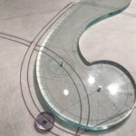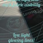 Lily Lines 1 features three graceful French curves, fine measurement gradations along all edges, a laser etched 1/4″ echo line and four pinhole alignment lines. You are limited only by your imagination in creating beautiful curving frames, radiating curving foundation quilting, or perfect rulered spines for feathers. Made of 1/4″ thick, compressed light emitting acrylic. It is a translucent pale, pale green that reads as clear from above, but glows a beautiful aquamarine from the edges if viewed at an angle. Measuring 10.5″ x 3″, they are just the right size, ideal for making easy, graceful frames, especially behind appliqué. All edges feature finely inscribed registration lines for precision placement time and time again. Simply match a ruler line with a registration point directly on the quilt for easy, repeating perfect curving lines. Be sure to download a idea PDF.