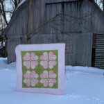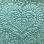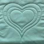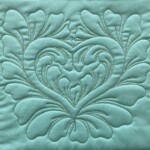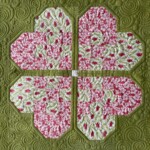 Love Lines 3 is a multifunctional tool, as I insist all my rulers are. Its main career is making a perfect reflected heart with a sharp point, unlike classic heart templates. The quilted heart has a contemporary flare, reminiscent of the paper valentines we love to cut out. The sew heart is 7 1/4″ high and 8″ wide, so, if embellished with feathers, it is perfect for larger borders and setting triangle shapes with 10 or more inches of fabric to fill with quilted love.