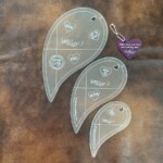 You aren’t limited to hearts though! all the sides are beautiful flowing curves, ideal for all kinds of ruler work. The ruler has a registration line at the apex of the teardrop curve to assist with accurate block work reflections of either the double S side or the gentle arc. Inscribed lines mark the center horizontal alignment and vertical reflection line of the sewn heart shape, with a pin hole for pin point accuracy. An adorable heart shape hang hole is the sprinkles on this sweet ruler!