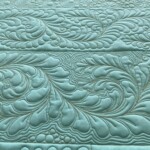 Made of my studio’s signature 1/4” compressed light emitting acrylic in a soft aquamarine color, the inscribed lines are vivid on any color fabric. Suitable for all longarm ruler work quilting and domestic machine ruler quilting with high shank – high wall ruler feet.